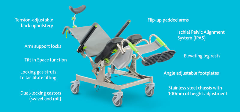 The specifications of a RAZ shower chair vary from client to client and are each based on your clinical reasoning to meet your client's needs. Listed below are the common reasons to justify the specification of the RAZ chairs divided into parts, functions and accessories:
