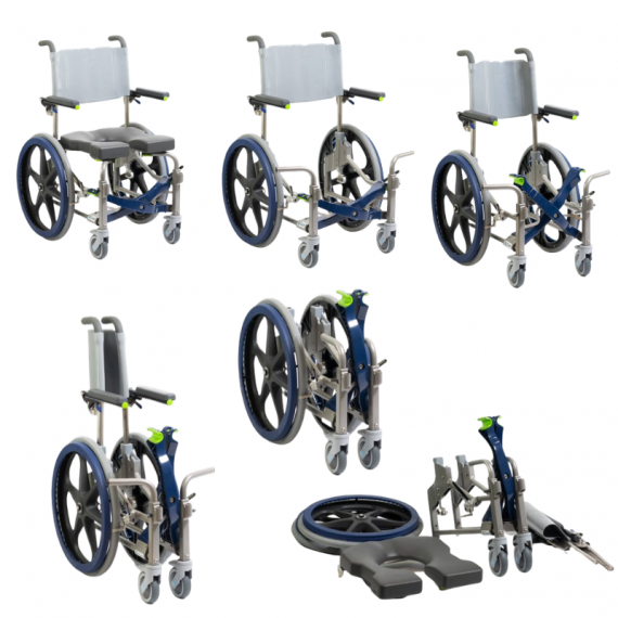 The ZUM represents the ultimate in folding mobile shower commode chairs. It’s unique cross-brace provides for a very rigid chair that can be positioned further rearward over a toilet bowl for better aperture alignment. The RAZ-ZUM SP includes forward and backward rear wheel centre of mass adjustment, for increased manoeuvrability. The ZUM has a lightweight, aluminium frame and a removable back assembly for ease of transport.