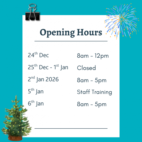 Please note: We will also be closed on Monday, 5th January for a staff training day as we prepare for an exciting year ahead.