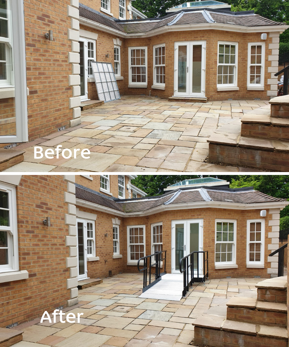 To facilitate our client and his family inhabiting their rented home, we have been instructed to carry out a number of pieces of work. Our first job was to install access ramping to the front and rear of the property.