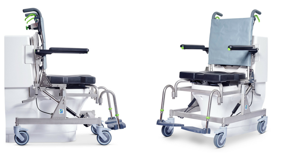 So, what should you look for in a shower chair that’s going to be used with a wash-dry toilet? How can you ensure the user is comfortable, supported and cleaned?