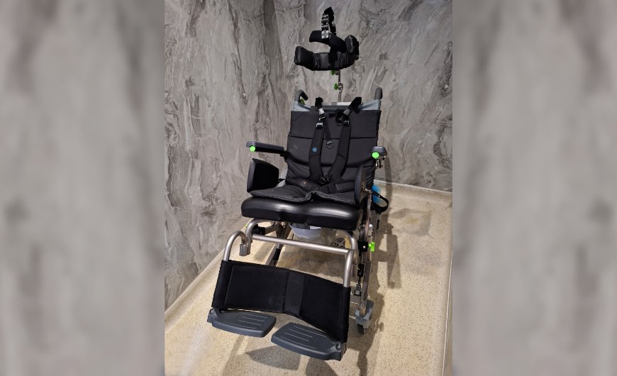 The difference was immediate. For the first time, our client's head could be supported securely in a safe, upright position. The added head support and frontal stabilisation meant carers no longer had to physically hold his head during washing, removing a major risk and a huge source of stress.