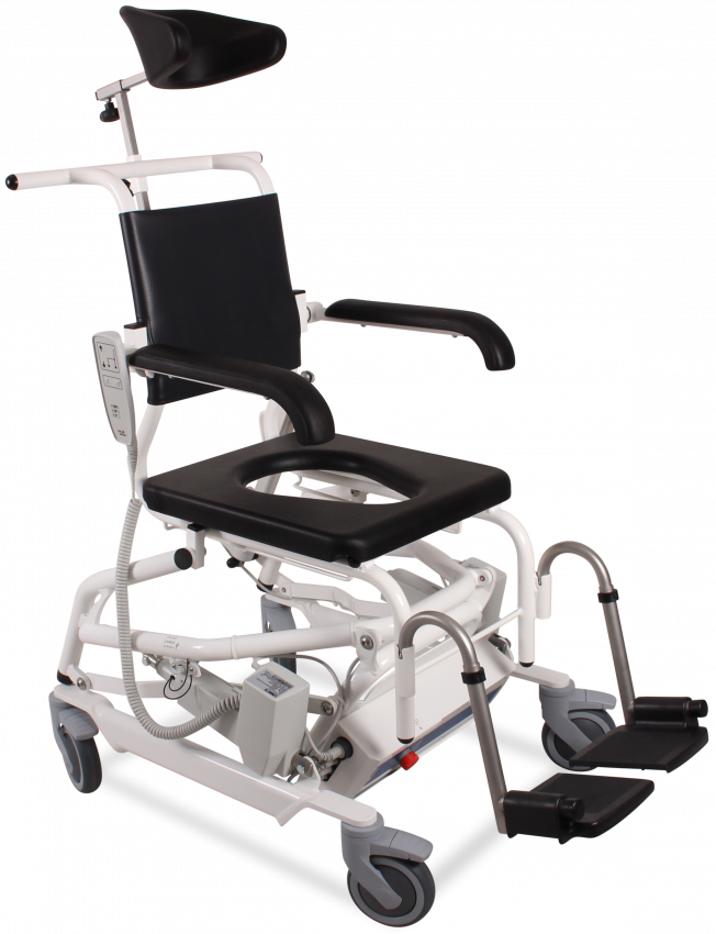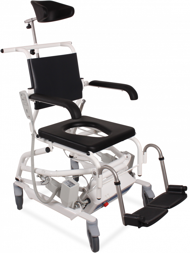 Both models offer height adjustment, tilt-in-space functionality, and a safe working load of 150kg, ensuring comfort, safety, and ease of use during bathing and toileting. Their compact frames and easy-charge systems make them ideal for use in both home and clinical environments.