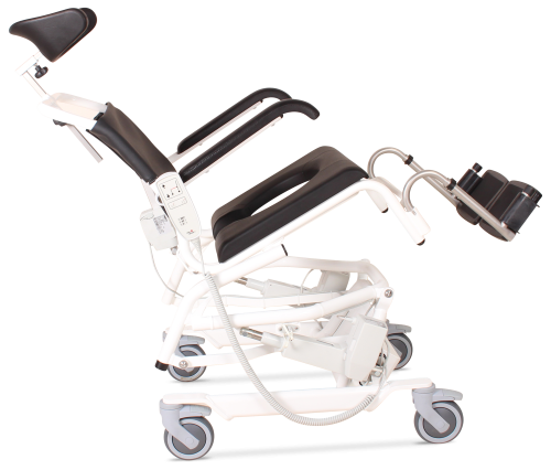 The IndiGo² Compact Access is a space-saving version of our powered shower chair range, designed with a shorter frame to accommodate wall-hung and close-coupled toilet pans with ease. Retaining the trusted functionality of the IndiGo² 5, including height adjustment and tilt-in-space, it offers a safe working load of 130kg. Its compact footprint and easy-charge system make it ideal for use in smaller bathrooms or tight care environments, while providing a smooth and comfortable bathing and toileting experience for both users and carers.